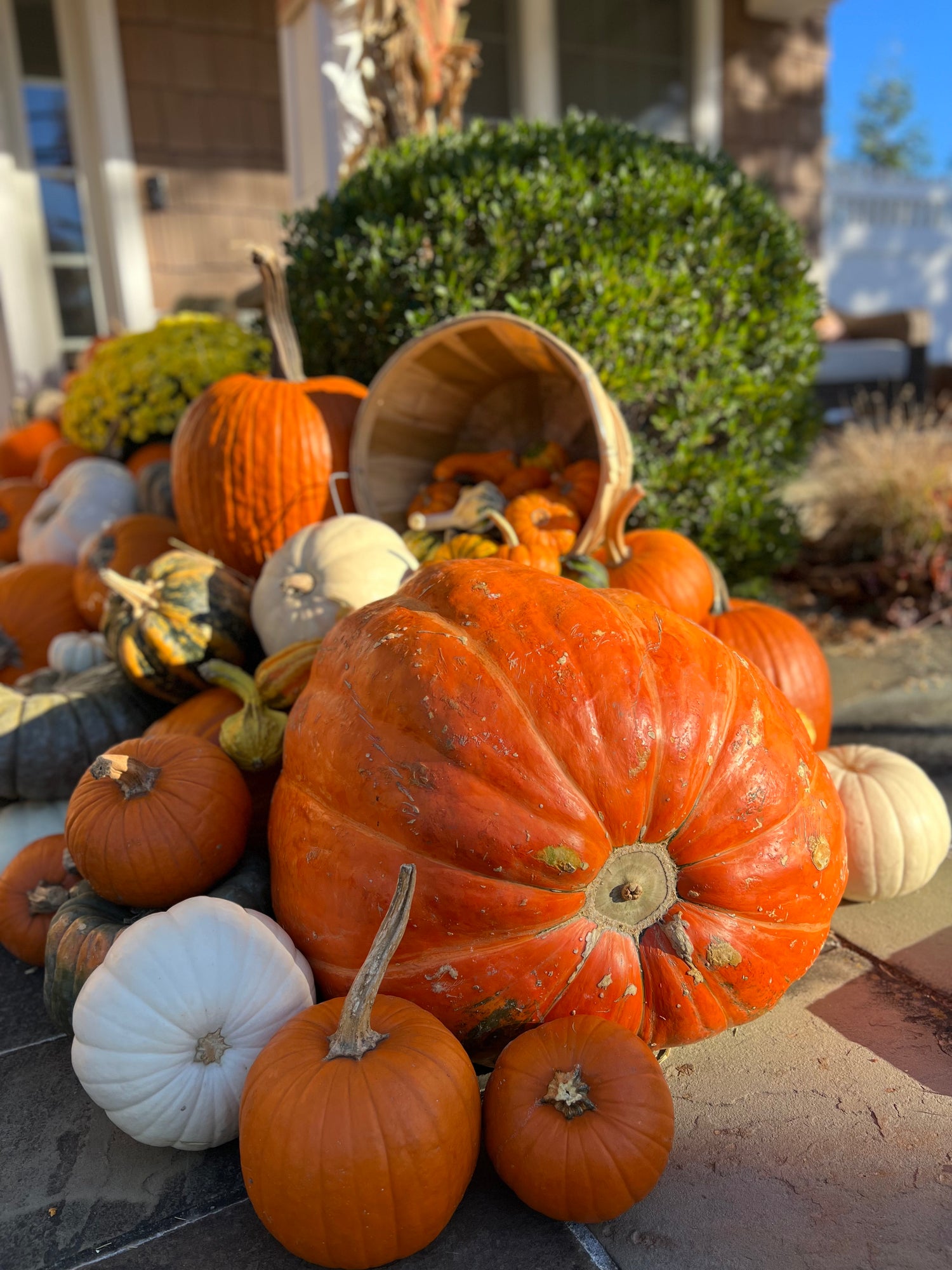 We love adding a prize pumpkin by mailboxes, backyard features, and side entrance ways.
