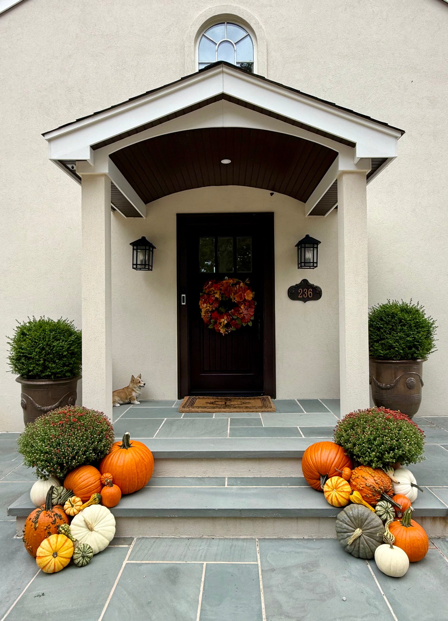 This family added the perfect Signature fall pile with two mums to compliment their lovely planters.